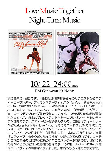 1曲目は西川伊都子さんのリクエストからスティービーワンダー、ディオンヌワーウィックの It’s You。映画 Woman in Red の中の挿入歌でした。この映画はスティビーの「心の愛」、I Just Call to Say I Love You で有名ですね。「心の愛」でグラミー賞、ゴールデングローブ賞を受賞しています。共作の疑いの裁判が開かれたのですが、日本のブレッドアンドバターにプレゼントした時のテープが証拠になり、スティービーは勝訴しました。