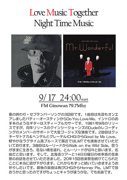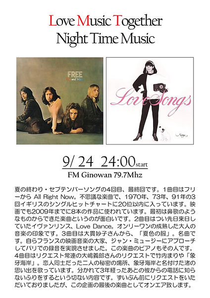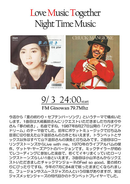 今週から「夏の終わり・セプテンバーソング」というテーマで構成いたします。