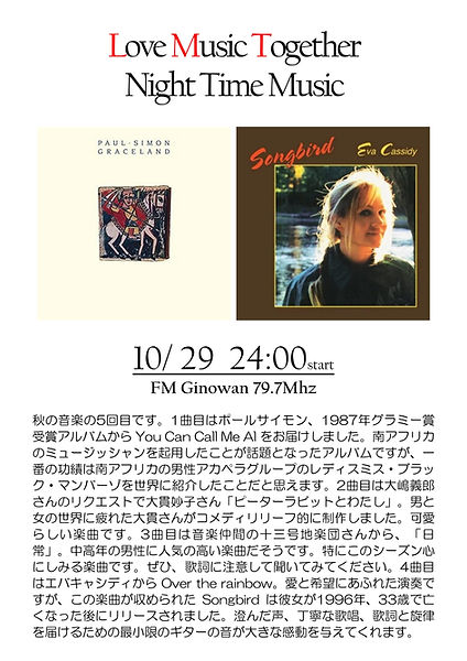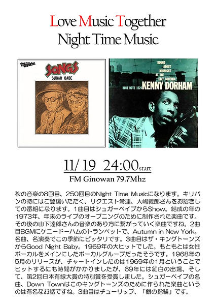 秋の音楽の8回目、250回目のNight Time Musicになります。